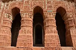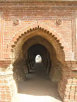 Radh Bengal is a region in West Bengal also known as the Temple Town. This region consists of arrays of temples in varying sizes and devoted to different gods and goddess but the common thread unifying this group is that the temples are constructed in terracotta. The region consists of following districts Birbhum, Bankura, Burdwan, Purulia and parts of Murshidabad. The construction style originated in 16th century and lasted till the 19th century. This period is also referred as a golden age of temple in West Bengal. Reason for development of this construction technique was the rich red laterite soil of the region and lack of construction worthy stone. The skill of creating daily objects from like vessels, pottery, seal and toys evolved into a construction technique in the time of need.[1] These temples are baked terracotta panels or bricks. This particular style spread outside the present day West Bengal as well, to Jharkhand, Bihar, Assam and Tripura.[2]