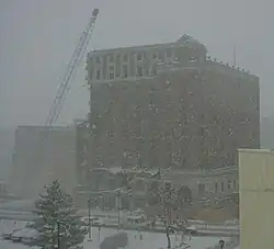 Initial demolition of the hotel began during the last week of September 2005, when excavators ripped away the attached two-story section at the rear of the hotel (which contained the Mayflower Ballroom). This section was chosen as the starting point because it allowed crews more room to bring in the equipment needed to demolish the 10-story main portion of the hotel.