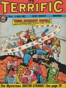 Terrific was a weekly British comic published by Odhams Press' Power Comics imprint in 1967–1968. Terrific was similar in format to its sister title Fantastic, which had started publication two months earlier. The two titles were quite unlike other British comics of the time, consisting mainly of material reprinted from American Marvel Comics, serving as an introduction to many of Marvel's superhero characters. In this respect, Fantastic and Terrific can be considered precursors of the Marvel UK weeklies such as The Mighty World of Marvel that appeared beginning in 1972.
