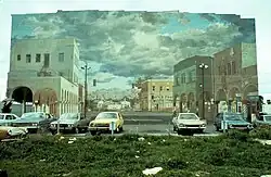 Although he worked with Henderson and artists including Michael Davis, Schoonhoven worked largely on his own after the Fine Arts Squad disbanded. His 1979 mural, St. Charles Painting, was among his most acclaimed. A mirror image of a street scene on Venice's Windward Avenue, Schoonhoven said: "It functions as a large empty stage set with real people acting out their lives in front of it."[15] A mural Schoonhoven painted during the same time period, Downtown LA Under Water, was similarly praised. "A monumental painting that seemed to represent a hallucinatory mix of conditions", it was first exhibited in a solo show at ARCO Center for Visual Art and later during the opening of LACMA's contemporary wing.[16] His 1982 mural, White City—a "mythological white−walled city where clear blue skies and an ominous frozen silhouette rise above architectural structures", was commissioned by CSU Long Beach. The mural's completion coincided with the exhibit Vapor Dreams in L.A.: Terry Schoonhoven’s Empty Stage. [17]