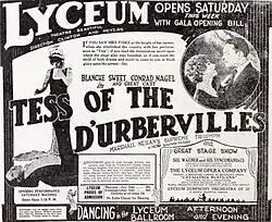 Tess of the d'Urbervilles is a 1924 American silent drama film starring Blanche Sweet and Conrad Nagel.[1][2] It was directed by Sweet's husband, Marshall Neilan. The film is the second motion picture adaptation of the 1891 novel by Thomas Hardy, which had been turned into a very successful 1897 play starring Mrs. Fiske.[3] In 1913, Adolph Zukor enticed Mrs. Fiske to reprise her role in a film version which is now considered lost. The 1924 version is also considered lost.[4]