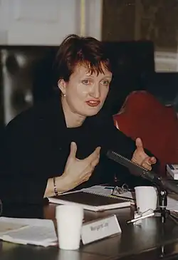 In July 2003, she launched an overhaul of the National Lottery.[24] She dealt with complaints that the lottery had been directed to fund programmes that should have been covered by mainstream taxation. In 2001 Arts Council England announced changes to how funding would be distributed and she supported this.[25] She oversaw the restructuring of the Arts funding system but lost out in the 2004/5 spending round, when there was a cut in her departmental budget.[26] In 2004 a tax loophole was closed around film production in Britain.[27]