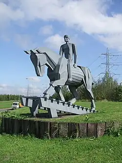 The 1996 "Horse and Rider" galvanised steel statue on the Black Country Route, Wolverhampton was commissioned by Wolverhampton City Council. Pullan carved the sculpture using wood and then the model was scaled up and produced in steel by Arden Fabrications of Knowle.[10][11]