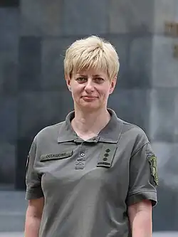 Tetiana Mykolaivna Ostashchenko (Ukrainian: Тетяна Миколаївна Остащенко; born August 1974) is a Ukrainian military doctor and major general. She was Commander of the Medical Forces of the Ukrainian Armed Forces from 2021 until November 2023.[1][2] She is the first woman in Ukraine's history to command a military branch, first woman to hold the rank of major general[3] as well as brigadier general.[4]