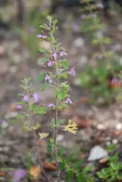 Teucrium botrys, the cutleaf germander[1] or cut-leaved germander is a low to short downy annual, sometimes biennial, plant. It was noted by Carl Linnaeus in 1753 and is classified as part of the genus Teucrium in the family Lamiaceae. It has oval, but deeply cut leaves, which appear almost pinnate in form. Its flowers are two-lipped but with the upper lip diminutive. They are pink to purple and form from the stem at the base of the leaves, in whorls. It is in flower in the northern hemisphere from June to October. It prefers limy soils and bare stony ground. It is native to Western Europe, especially France and Germany.[2] It has been introduced into north-eastern North America.