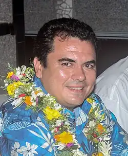 In the leadup to the 2013 territorial elections he founded the A Tia Porinetia party.[13] The party came third in the elections, winning 25 percent of the vote.[14] Following the elections he was a candidate for president, but lost to Gaston Flosse.[15]