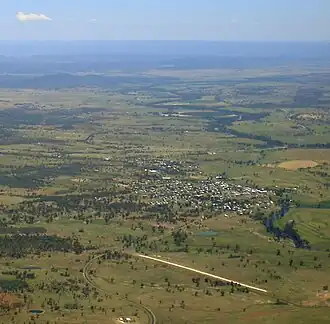 ![]() Aerial view of Texas, looking south with the aerodrome runway in the foreground, 2010 | |||||||||||||||