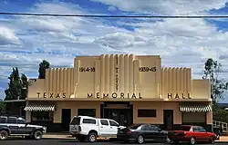 Texas Memorial Hall is at 50 High Street (28°51′18″S 151°10′06″E / 28.8551°S 151.1682°E). It is operated by the Goondiwindi Regional Council.[33]