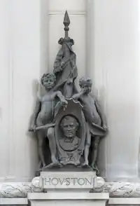 This column faces north to overlook the entrance to Galveston and, at the time, the entrance to the state of Texas. At the base of the column is a bronze relief of Sam Houston flanked by representations of peace and war. Underneath Houston are the reliefs of five men: Henry Smith, Edward Burleson, Benjamin Milam, James Fannin and James Bonham. Below the column on the monument is a bas relief of the Battle of San Jacinto. And finally, below this, reads "A Tribute from Henry Rosenberg to the Heroes of the Texas Revolution of 1836."
