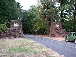 In 1927, a small area of land near Caddo Lake was donated to create a public park. In 1929 and later in 1931 Caddo Lake itself and some of the surrounding areas were designated by the state of Texas to become state parkland. Between 1933 and 1937, the Civilian Conservation Corps (CCC) rebuilt the park and created many of the park's structures. The National Park Service designated landscape designers Joe W. Westbrook and Fred R. Carpentar, as well as others, to design the park's road system.[5] On September 22, 1936, the state highway commission initiated an investigation at the request of the state's parks board into the incorporation of certain park roads as part of the state highway system after which the highway commission would assume maintenance of these roads. The highway commission accepted roads in eight state parks including 3.1 miles (5.0 km) of the park road in Caddo Lake State Park as the original park roads in the state system on June 22, 1937.[2] On September 26, 1939, approximately 2.0 miles (3.2 km) of the roads inside the park were designated as PR 2. On August 15, 1968, a short road traveling from a boat-launch ramp to the park boundary was removed from PR 2, shortening the route by approximately 0.5 miles (0.80 km).[1]