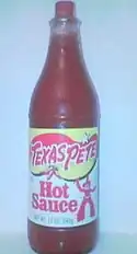 Texas Pete is a brand of hot sauce in the United States developed and manufactured by the TW Garner Food Company in Winston-Salem, North Carolina. TW Garner was founded by Thad W. Garner in 1929. As of 2022, Texas Pete is the seventh-best selling hot sauce in the U.S., according to Instacart, an online grocery service.[1]