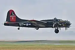 Texas Raiders returned to flight on October 14, 2009, and was featured at Wings Over Houston that month as a static display.[3] In March 2010, the plane was moved to the Tomball Jet Center in David Wayne Hooks Memorial Airport (KDWH) in Tomball, Texas.[7] Texas Raiders rejoined the air show circuit in 2010, just in time to commemorate the 75th anniversary of the first flight of the B-17. It traveled to the EAA AirVenture Oshkosh airshow, where it was featured in AeroShell Square.[8][9] That summer, the plane appeared at Thunder Over Michigan as one of eight restored B-17s, flying in formation with Yankee Lady, movie Memphis Belle, Nine-O-Nine, Aluminum Overcast, Liberty Belle, Thunderbird, and Sentimental Journey.[3]