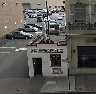 Little on the menu has changed since the restaurant's foundation.[6] Besides chili, it features a variety of hamburgers and hot dogs, as well as many breakfast items. Soft drinks are served, but nothing alcoholic.[7]