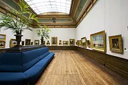 In 1884 the expansion of the museum, called "Nieuwe Museum" (New Museum), with the addition of the entrance on the Spaarne and the new Fossil rooms, had just been completed to commemorate 100 years of exhibits in the Oval Room.[1] The only part of the museum that had not profited from the expansion was the painting gallery, and this was finally done in 1893 by the regular building crew that the museum kept on hand for renovations. The new gallery was not only meant for extra exhibition space on the walls, but tables were set up for print and drawing viewing in the portfolio holders, a practice which has been kept up until today, although the prints in the viewing portfolios are now copies rather than originals.