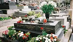 Sarapo, who was 34 at the time, died in a hospital in Limoges, France, after an automobile accident on 28 August 1970 in the nearby town of Panazol on road RN 141. He is buried with Piaf and her daughter Marcelle (the child Piaf had with Louis Dupont, her onetime lover) at the Père Lachaise Cemetery in Paris. The inscription on their tomb translates as "Love Conquers All". Édith's father, Louis Alphonse Gassion, is also buried there. His name is engraved on the right side of the tombstone along with Édith's and Théo's. Daughter Marcelle's name appears on the opposite side. Etched at the foot of the tomb are the words "Famille (Family) Gassion-Piaf".