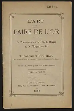 - ^ Tiffereau, Cyprien-Théodore (1819-19 ) (1896). L'art de faire de l'or : la transmutation du fer, du cuivre et de l'argent en or. chez l'auteur (Paris-Grenelle).