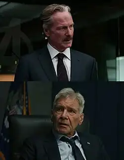 ![]() William Hurt (top) and Harrison Ford (bottom) as Thaddeus Ross in Captain America: Civil War (2016) and Captain America: Brave New World (2025) respectively. | |
