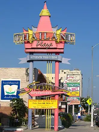 Thai Town (Thai: ไทยทาวน์) is a neighborhood in Central Los Angeles, California. In 2008, it was one of the five Asian Pacific Islander neighborhoods in the city—along with Chinatown, Little Tokyo, Historic Filipinotown, and Koreatown—that received federal recognition as a Preserve America neighborhood.[1] It is the only officially recognized Thai Town in the United States.[2]