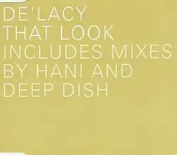 "That Look" is a song by American house-music group De'Lacy featuring vocals by lead vocalist Rainie Lassiter, and was released in 1996. Kevin Hedge and Josh Milan wrote the lyrics, which was published by Warner Chappell Music Ltd., and Blaze helmed the production. It was a sizeable hit in clubs in both the UK and US, and charted at number 19 on the UK Singles Chart, but fared better on the UK Dance Chart, reaching number two.[1] In Italy, the single was a top 30 hit, while on the Eurochart Hot 100, it peaked at number 41 in September 1996. In the US, it peaked at number 27 on the Billboard Hot Dance Club Songs chart.[2] A music video was also produced to promote the single.