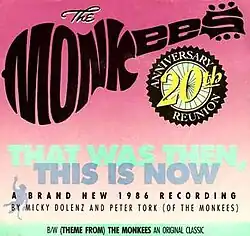"That Was Then, This Is Now" is a song written by Vance Brescia for his band the Mosquitos and recorded as the title track of their 1985 EP.[3] Clive Davis of Arista Records heard it and picked it to be the Monkees' comeback single and theme of their 20th Anniversary Tour in 1986.[4]