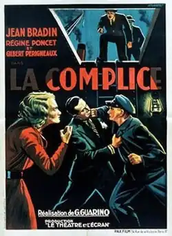 The Accomplice (French: La complice) is a 1932 French crime film directed by Giuseppe Guarino and starring Régine Poncet, Jean Bradin and Gilbert Périgneaux.[1]