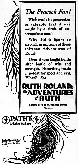 The Adventures of Ruth is a 1919 American film serial directed by George Marshall. It is now considered to be a lost film.[1] The serial was advertised as written, produced and directed by Ruth Roland. Roland was the producer, but it was written by Gilson Willets and directed by George Marshall.[2]