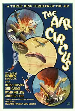 The Air Circus is a 1928 American sound part-talkie drama film directed by Howard Hawks and starring Arthur Lake, Sue Carol, David Rollins, and Louise Dresser. It is the first of Hawks's aviation films.[2] The film featured a talking sequence that lasted about 15 minutes with the rest of the film being synchronized with a musical score with sound effects. The soundtrack was recorded using the sound-on-film Movietone process. The film is notable as the first aviation oriented film with dialogue.[3][Note 1]