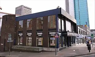 Although the main entrance was originally situated on John Bright Street, a new main entrance block was built on Suffolk Street between 1967–1969 to a design by the John Madin Design Group, with a wide bridge linking the two - from the inside, the appearance is that of a single building.[1] Satchwell's interior was refurbished in 1992 by the Seymour Harris Partnership.[1] The Alex was sold to Apollo Leisure in the 1990s. Derek Salberg's autobiography "Much Ado About Theatre" had its foreword written by Laurence Olivier. Under Leon Salberg, the Alex was famous for its pantomimes such as "Mother Goose".