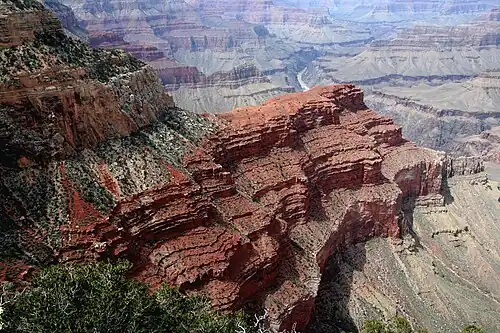 | Rock type(s) | Esplanade Sandstone horizontal platform (unit 4), (complete Supai Group on platform of Redwall Limestone) and Supai Group, Redwall Limestone, (Tonto Group- 3-units) _3-Muav Limestone, _2-Bright Angel Shale, _1-Tapeats Sandstone, Vishnu Basement Rocks |