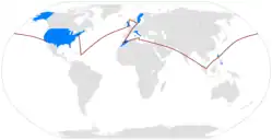 - ^ Five teams were on the first flight from John F. Kennedy International Airport, while the remaining six teams departed forty minutes later.