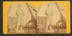 The monument was designed by sculptor Carl Conrads and architect George Keller of the New England Granite Works of Hartford, Connecticut.[1] The statue, described as "the largest work of its kind in the country",[2] was prominently exhibited at the 1876 Centennial Exposition in Philadelphia, Pennsylvania. It was transported to Sharpsburg, installed atop the monument, and dedicated at the National Cemetery in 1880. The total cost of the monument was over US$32,000.[3] The statue's nickname is "Old Simon".
