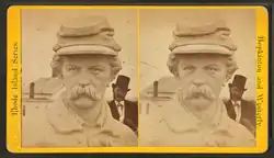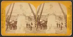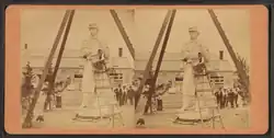 More than 10 million people (one-fifth of the U.S. population) visited the Exposition, and nearly all of them would have seen the statue.[13] Millions more experienced it through illustrations and photographs. Although its formal name was "The American Soldier",[14] the statue soon became popularly known as "The American Volunteer". The widely distributed stereoscopic view (shown at right) used the caption "The American Volunteer", and may have been responsible for this renaming.[15]