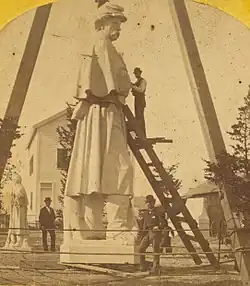 Batterson allowed O. Langworthy & Company to photograph the colossal statue at the Rhode Island Granite Works prior to its departure by ship for Philadelphia, Pennsylvania. This may have been intended to generate publicity before its formal debut at the Centennial Exposition in May 1876.
