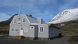 The house is located in the new part of Súðavík, on the land of the former farm Eyrardalur. It was built in the last decade of the 19th century and has been renovated recently by the authorities of Súðavík.[2]