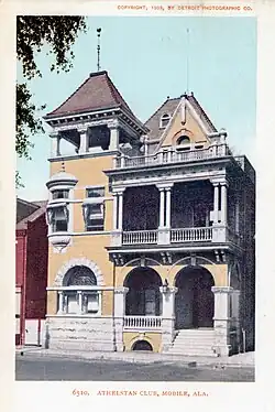 The Athelstan Club, formerly The Athelstan Masonic Temple, is a private gentlemen's club in Mobile, Alabama, US, founded in 1873, tracing its roots to a Masonic lodge established in 1870.[1] By 1875 it had loosened membership to non-Masons and in 1876 formerly became The Athelstan Club. It admittedly admitted its first African American Member in 2011.[2]