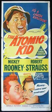 The Atomic Kid is a 1954 American black-and-white science fiction comedy film directed by Leslie H. Martinson and starring Mickey Rooney and Robert Strauss. It was distributed by Republic Pictures and produced by Maurice Duke and Mickey Rooney.