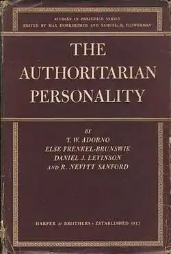 - ^ a b c d Adorno, Theodor; Frenkel-Brunswik, Else; Levinson, Daniel; Sanford, Nevitt (1993) [1950]. The Authoritarian Personality (PDF). Studies in Prejudice Series. Vol. 1. New York City: Harper & Row and W. W. Norton & Company. ISBN 0-393-31112-0.