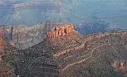 The Battleship is a 5,850-foot (1,780 m)-elevation summit located in central Grand Canyon, in Coconino County of northern Arizona, United States. The ridgeline, Battleship landform forms part of the western border of Garden Creek Canyon, which contains the Bright Angel Trail down to the Colorado River, and across it to Phantom Ranch. The east border of Garden Creek Canyon is the South Rim, with the overlooks of Grandeur Point and Yavapai Point. The Battleship is 1.5 miles (2.4 km) northwest of Yavapai Point, 1.5 miles due-north of Grand Canyon Village, and roughly 2.0 miles (3.2 km) southwest of the Colorado River.