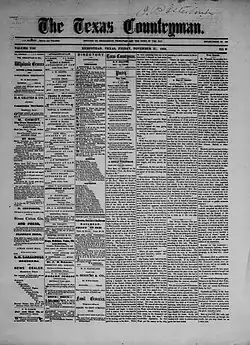 3. ^ "The Texas Countryman (Bellville, Tex.) 1865-1869". The Portal to Texas History. 2024-08-26. Retrieved 2024-08-28.