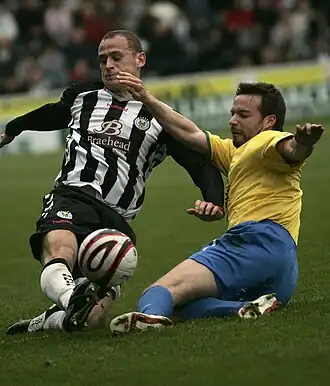 In Scotland, football games were common enough for the Scottish Parliament to attempt to outlaw them on several occasions. An act of 1457, under James II, is typical.[2] The act was principally intended to encourage archery practice but decreed that football, and also golf, should be simultaneously discouraged.