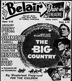 - ^ "'The Big Country' with Gregory Peck, Jean Simmons, Carroll Baker and Charlton Heston". Harrison's Reports: 128. August 9, 1958.