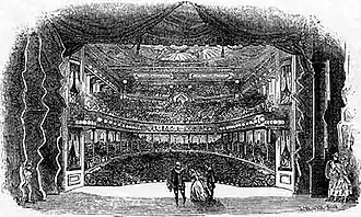 By 1866, Henry C. Jarrett and Henry Palmer had formed a producing partnership with the idea to import European novelty acts to America. They saw the Féerie La Biche au bois in Paris, and a pantomime at Astley's Amphitheatre in London, and they wanted to incorporate into their American productions the original elements of spectacle that they saw in those shows. They engaged some of the lead dancers from the Paris show and purchased the grand transformation scene from the London piece. They hoped to put together a spectacular production at the New York Academy of Music, but the Academy burned down that summer. Meanwhile, Barras, an actor, wrote a melodrama, The Black Crook, with the intention of touring the piece to feature himself and his wife, dancer Sallie St. Clair. He negotiated the show's New York premiere with William Wheatley, the manager at Niblo's Garden, for a run of 100 performances, which was an extraordinarily long contract for the 1880s. Barras then began to build the scenery and properties in Buffalo, New York.[3]