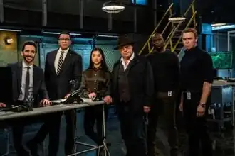 The Blacklist characters (season 9; 2021–2022) from left to right: