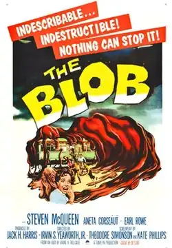 The Blob is a 1958 American science fiction horror film directed by Irvin S. Yeaworth Jr. from a screenplay by Theodore Simonson and Kate Phillips, based on an idea by Irving H. Millgate.[3] It stars Steve McQueen (in his first leading role) and Aneta Corsaut and co-stars Earl Rowe and Olin Howland.