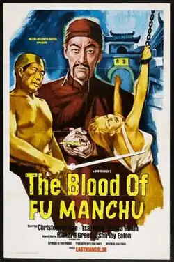 The Blood of Fu Manchu (German: Der Todeskuss des Dr. Fu Man Chu, lit. 'The Death-Kiss of Dr. Fu Manchu', Spanish: Fu-Manchú y el beso de la muerte), also known as Kiss of Death, Kiss and Kill (U.S. title) and Against All Odds (original U.S. video title), is a 1968 British adventure crime film directed by Jesús Franco, based on the fictional Asian villain Dr. Fu Manchu created by Sax Rohmer. It was the fourth film in a series, and was preceded by The Vengeance of Fu Manchu. The Castle of Fu Manchu followed in 1969.[4]