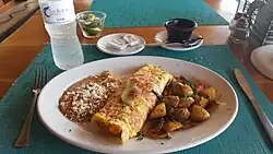 The menu features fish (including mahi mahi and tuna), and the restaurant has a salad bar.[2] The Blue Shrimp has also served bacon-wrapped shrimp stuffed with cheese, guacamole, and the shrimp boat, which has calamari, ceviche, coconut, diabla shrimp, garlic bread, and tequila, served in a small boat.[5]