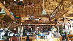 In her 2020 Moon guide for Puerto Vallarta, Madeline Milne describes The Blue Shrimp as a "sophisticated palapa-style restaurant with beautiful natural decor".[1] The interior features "relics of ancient ships" and walls resembling reefs. Aquariums and blue lights also contribute to the nautical theme. The bathrooms are shaped like shells.[2] Fodor's says, "The Blue Shrimp is a beautiful beachfront thatched-roof palapa restaurant right on the heart of the Zona Romántica. This is one of the go-to place for expats living in the area and tourists who want to try the famous Mexican seafood cuisine. The Blue Shrimp serves delicious dishes for breakfast, lunch, and dinner and some of the best cocktails in PV. For lunch, you may want to try the Campechano Cocktail, which comes with a mix of shrimp and octopus, while the lobster enchiladas are a must for dinner."[3][4]