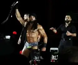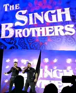 On the April 18, 2017, episode of SmackDown Live, they made their main roster debut as The Singh Brothers; Gurv was renamed Sunil Singh, while Harv was renamed Samir Singh. They interfered in a six-pack challenge match to determine the number one contender for Randy Orton's WWE Championship at Backlash, helping Jinder Mahal win the match, turning heel in the process.[12] During Mahal's reign as champion, they usually interfered during his title defences.[13][14][15] On the January 16, 2018, episode of SmackDown Live, Samir suffered a torn ACL during a ringside brawl with Bobby Roode. On April 16, The Singh Brothers moved to Raw brand as part of the Superstar Shake-up alongside Jinder Mahal. On the October 15 episode of Raw, Samir returned after his injury to unite with his brother and Mahal. Sunil and Samir wrestled their first match on the January 1, 2019, episode of Raw when they teamed up with Mahal to defeat Heath Slater and Rhyno, in a 2-on-3 handicap match.