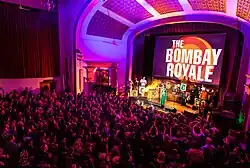 The Bombay Royale was an 11-piece Australian band fronted by singers Parvyn and Shourov Bhattacharya and led by Andy Williamson. The band performed original music that blends funk, disco and pop music with the classical and folk music of India, much like the soundtracks of 1960s and 1970s Bollywood movies.[1] The band was conceived by musical director Andy Williamson who also plays saxophone and flute.[2]