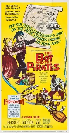 The Boy and the Pirates is a 1960 American adventure film directed by Bert I. Gordon, known as a master of giant monster films.[1] It stars a popular child star Charles Herbert and Gordon's daughter Susan Gordon. The storyline concerns Jimmy Warren and Katrina Van Keif, a boy and girl trapped on Blackbeard's pirate ship.